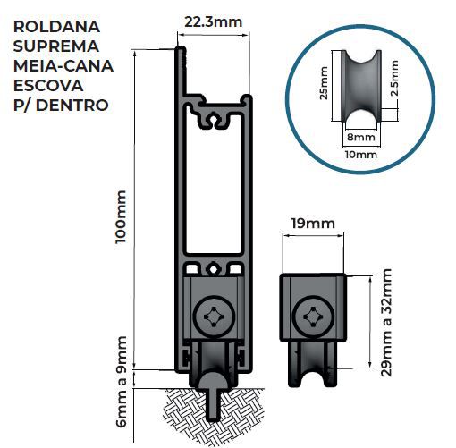 ROL15 80Kg Roldana para linha Suprema trilho redondo ou meia cana